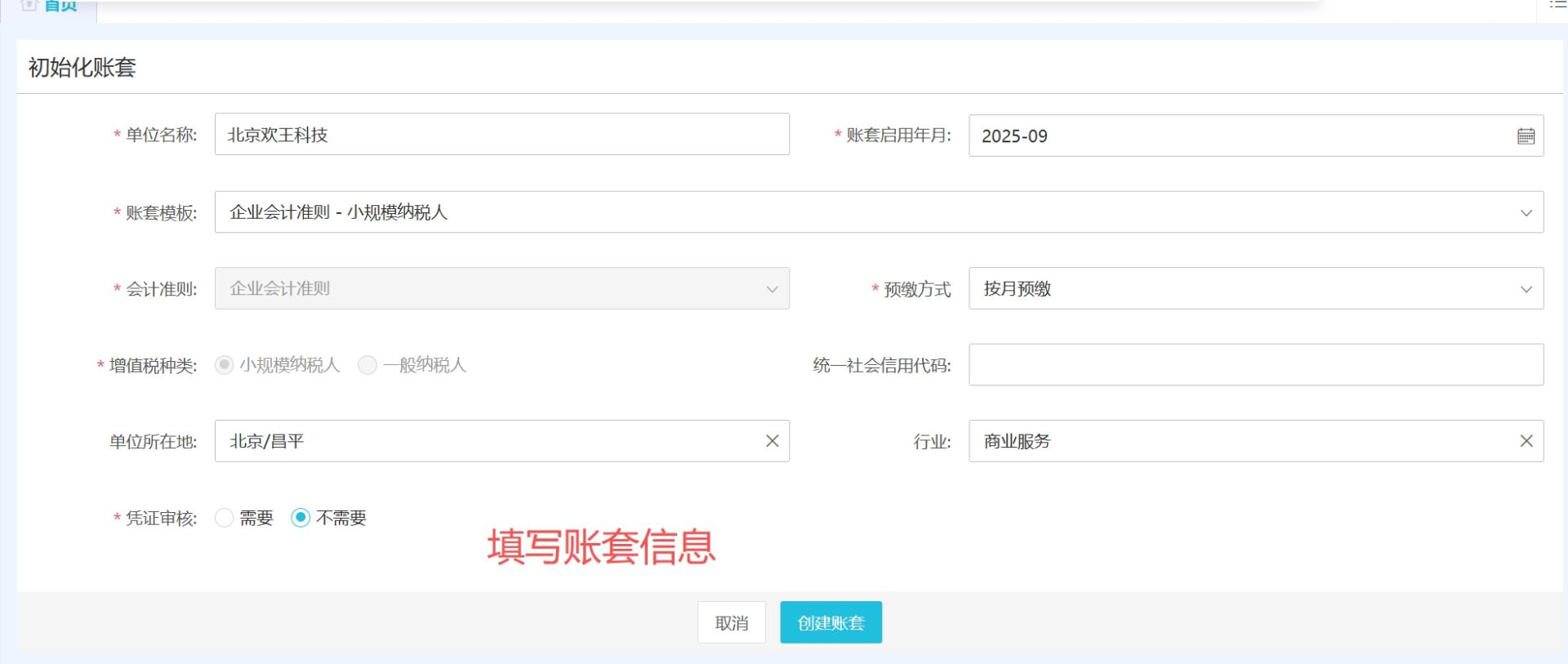创建账套流程极简,您只需三步即可快速完成初始化: