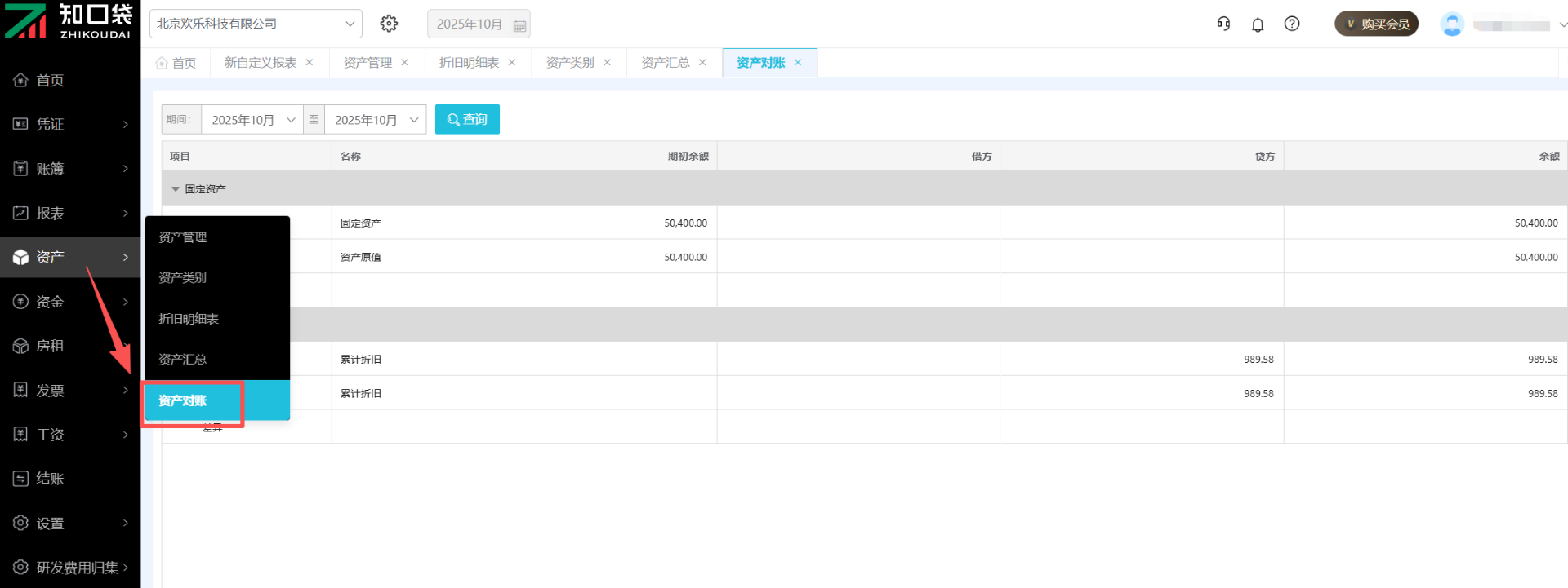 点击【资产】-【资产对账】即可进入功能页面。