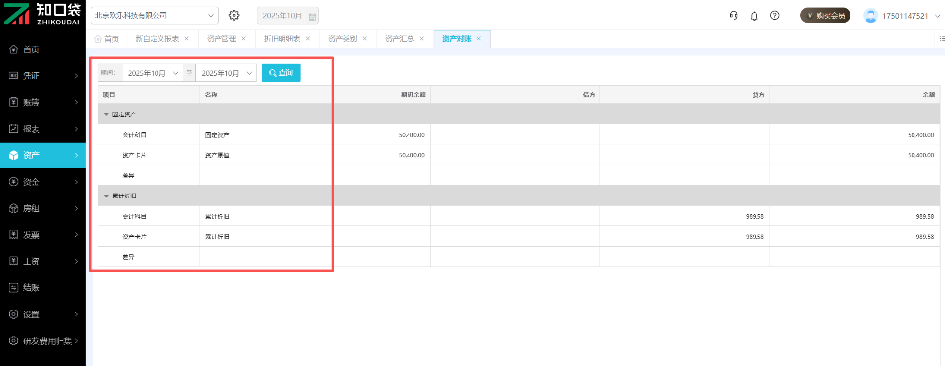 资产核对总账
