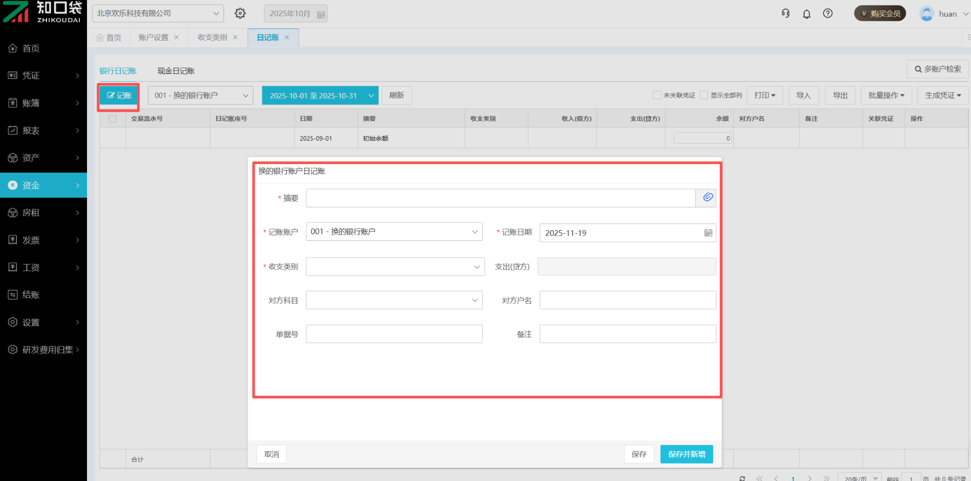 ①手工录入:点击页面左上角的【记账】,填写日记账数据内容即可。