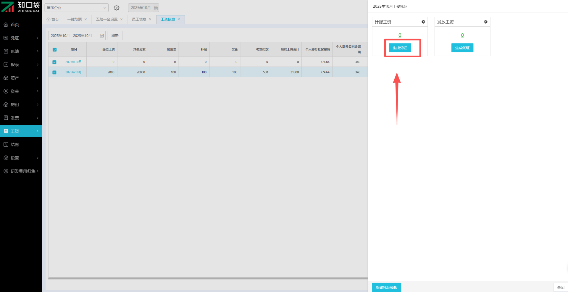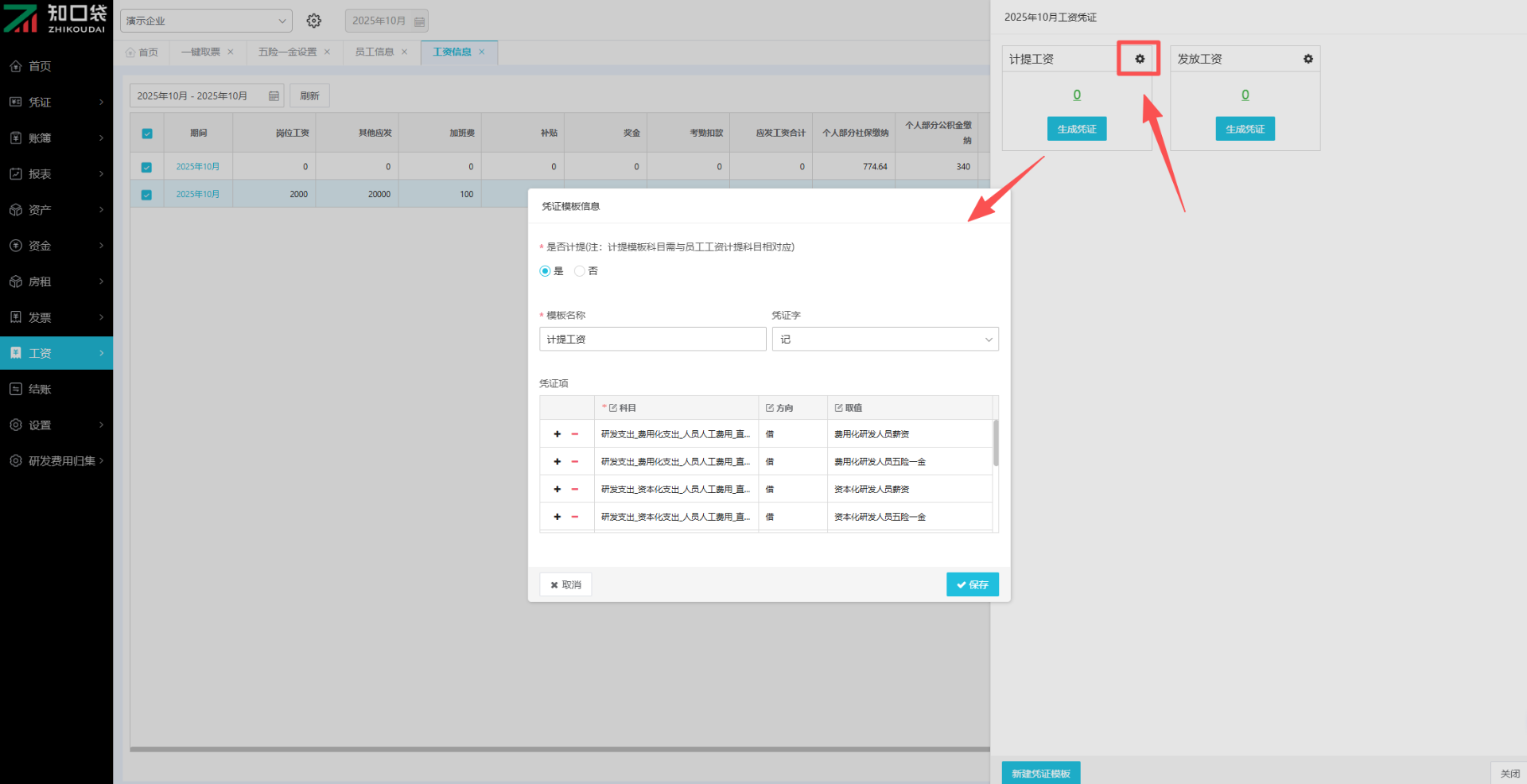 在凭证模板设置中“是否计提“选择(计提工资和发放工资两个关于是否计提选项判断取数一致)
