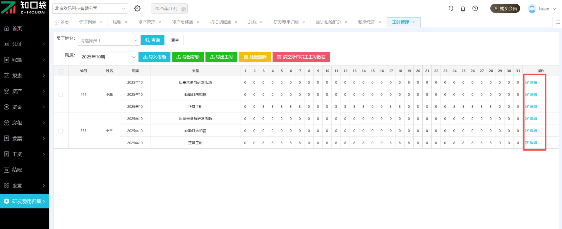 考勤导入之后,点击右侧【编辑】按钮,也可以对员工考勤进行编辑。